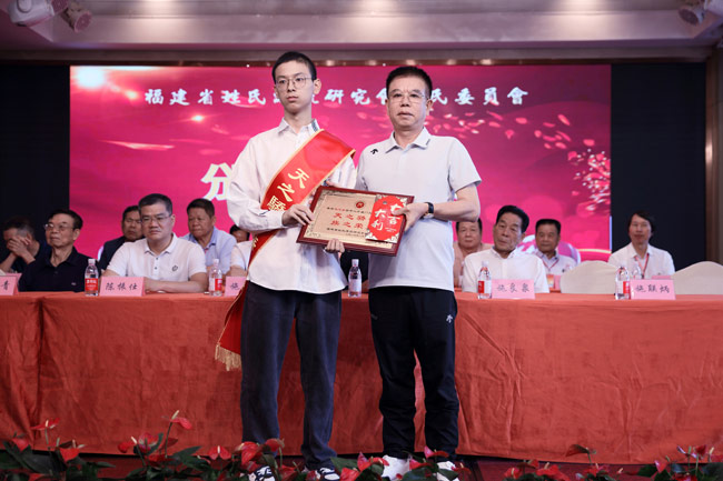 厦门临濮文化研究会会长施性勤为获奖学生颁奖
