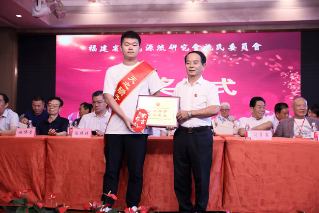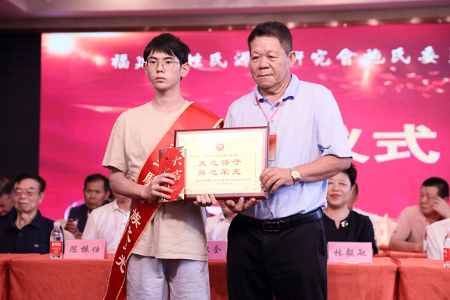 永远名誉会长施能辉为获奖学生颁奖(家属代领)